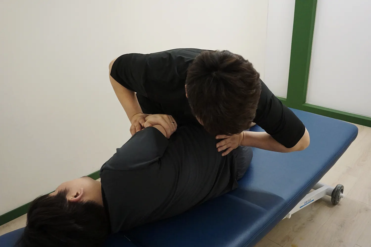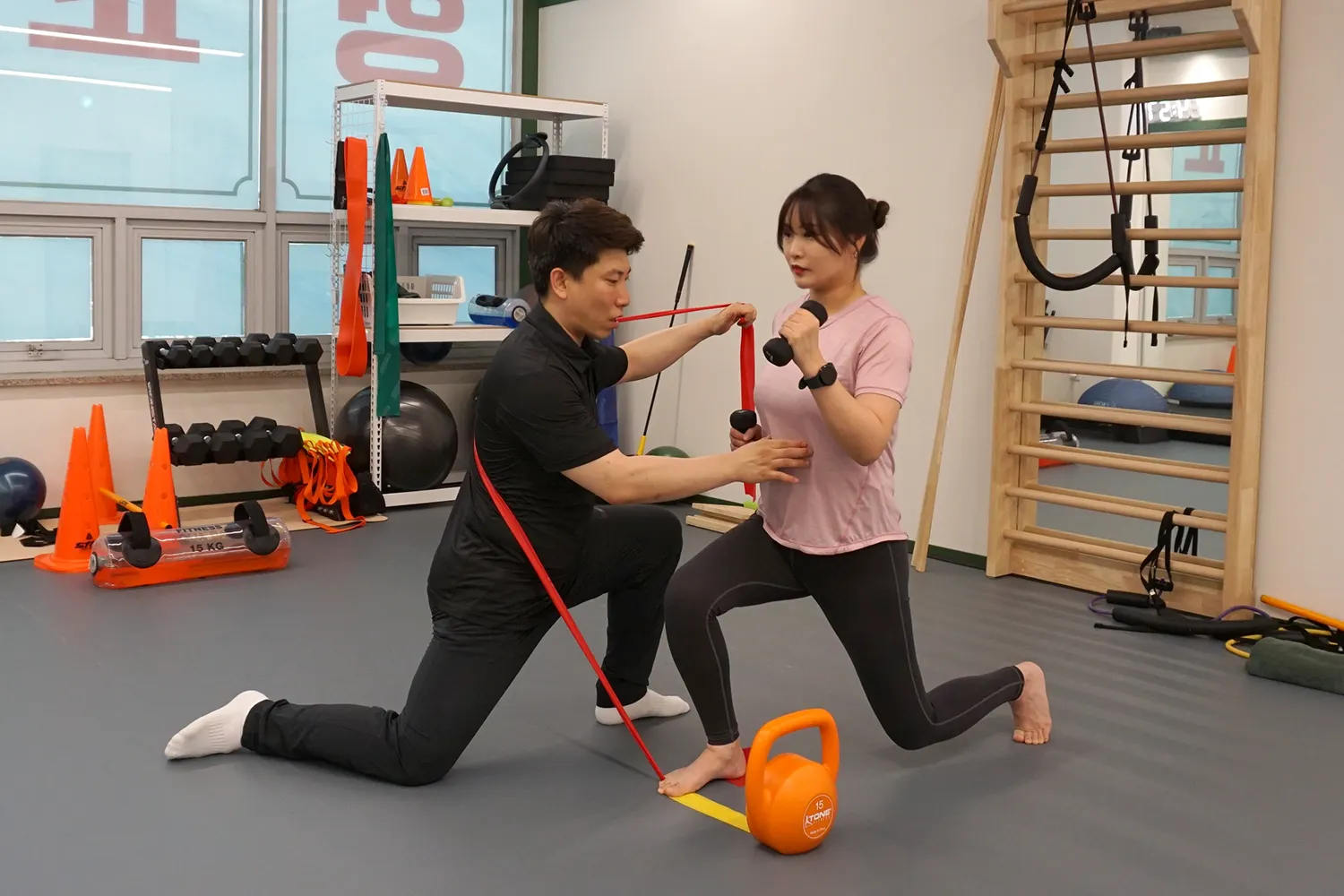 ๋ฌผ๋ฆฌ์น๋ฃ์ฌ์ถ์ ๊ฐ์ฌ๋ค์ด ๊ต์ ๋ถํฐ ์ฌํ์ด๋๊น์ง ๊ฐ์ธ์ ์ฒดํ, ๊ฑด๊ฐ์ํ, ๋ชฉํ์ ๋ง๊ฒ 1:1๋ก ๋ง์ถค ์ผ์ดํ๋ ์ ๋ฌธ์ผํฐ